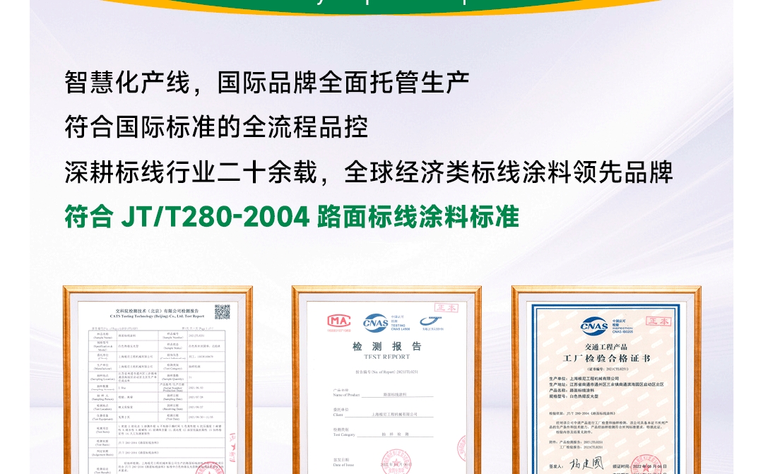 涂料特點(diǎn):結構合理、混合均勻、質(zhì)量一致性高 / 玻璃珠含量少 / 用途廣泛,使用方便。執行標準:符合JT/T280-2004主要標準;